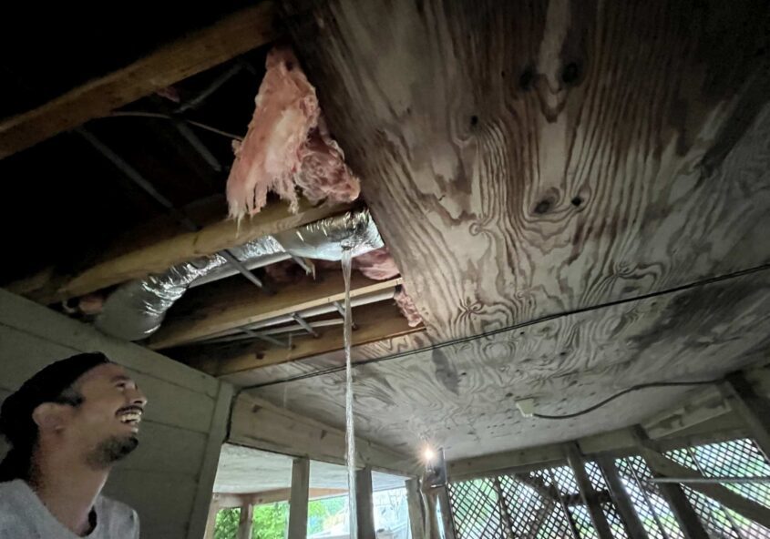Bluewater Team responds to water damage from icemaker overflow from top to bottom of house. The icemaker was in top floor kitchen which than drained through the floor to the ceiling of the floor below. Our guys must move all the furniture and protect it from additional harm. We then extract the water from the…