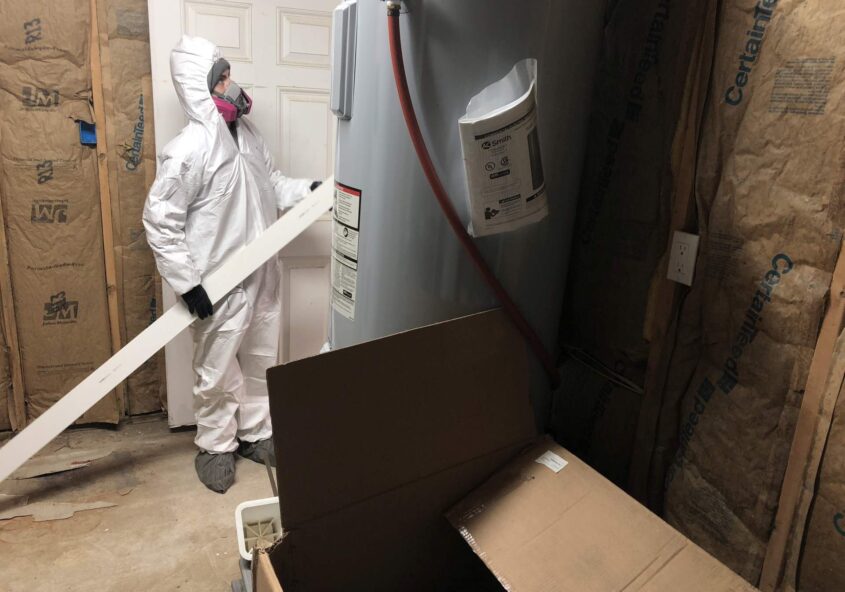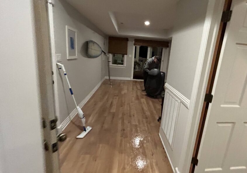 Bluewater Team responds to water damage from icemaker overflow from top to bottom of house. The icemaker was in top floor kitchen which than drained through the floor to the ceiling of the floor below. Our guys must move all the furniture and protect it from additional harm. We then extract the water from the…
